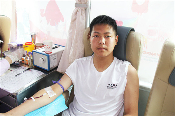 金濤濤是汽修專業(yè)四年級的學(xué)生,當(dāng)天他第一個走上獻血車,已經(jīng)第四次獻血的他顯得非常輕松。他告訴我們,自己初次獻血是十八歲,之后每年時間到了都主動來獻血,上次他還拉上了爸媽,一家三口一起獻了血。金濤濤覺得獻血特別有意義,對自己的身體有好處,還能救人,每次收到血站發(fā)來的用血短信心里都超級自豪,就想多喊幾個人一起來,他說今后一定爭取把全宿舍的人都動員起來,多獻血多出力多助人!