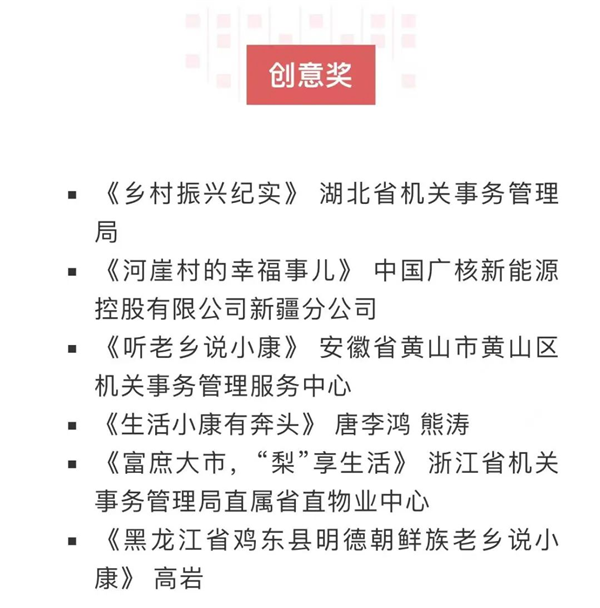 其中,恒口示范區(qū)選送作品《生活小康有奔頭》(作者·唐李鴻、熊濤)榮獲創(chuàng)意獎(jiǎng),其風(fēng)格親切,制作精良,感染力和觀賞性強(qiáng)。作品從獨(dú)特老鄉(xiāng)視角,讓老鄉(xiāng)當(dāng)主角,面對鏡頭講述自己用勞動(dòng)創(chuàng)造幸福生活的故事。同時(shí),生動(dòng)展示我們黨帶領(lǐng)全國各族人民打贏脫貧攻堅(jiān)戰(zhàn),全面建成小康社會(huì)的偉大歷史成就。?