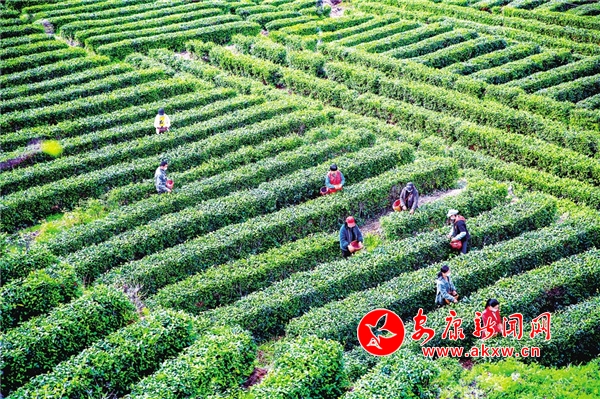 近年來,白河縣卡子鎮(zhèn)發(fā)展茶園面積近1300畝,帶動當(dāng)?shù)?20余戶200余人,實(shí)現(xiàn)戶均增收2000元以上。圖為近日,茶農(nóng)趁著濃濃春意在卡子鎮(zhèn)東壩桂花村茶園忙碌著。