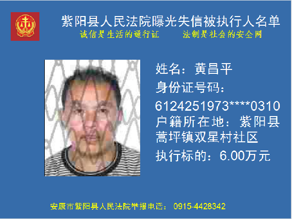曝光失信 | 紫陽縣人民法院:關(guān)于敦促黃昌平履行法定義務的公告