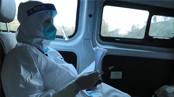 11月25日中午,忙完第一輪核酸采集,再接到流調(diào)通知單后,王康又立馬帶著他的“小伙伴”前往三里社區(qū)為居家隔離人員做核酸檢測,溝深路滑,因前幾日陰雨天氣路面濕滑,在上一處陡坡時,車輪瞬間開始側(cè)滑,但是時間緊迫只能一試再試,大概試了20余次,在村上壓路車的幫助下,又試了兩次車子終于緩緩啟動。喜悅之余他們就即刻趕往隔離群眾家中,“我們快一點,再快一點,就能讓等待的人少受一點冷”,這是“大白”們共同的心愿。