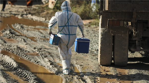 “遇到最大的困難是時常都是路況不好,路上常常塵土飛揚、霧天視線不清,尤其是遇到下雨天的陡坡泥濘路面最擔心,擔心路不好走的危險,更擔心耽誤了測核酸的進程。有時候要反復試幾十遍,才好不容易上去,這樣就會耽擱采樣時間,我們內(nèi)心也很焦急,但是沒辦法,因為山路不好走,路途常常都是幾十公里,就這樣每天幾乎都是從天明到黑夜?!?o:p>