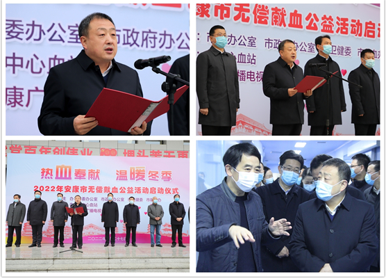 市委、市政府等市級領導連續(xù)4年組團式參加“熱血奉獻 溫暖冬季”無償獻血公益活動并帶頭獻血,市無償獻血領導小組印發(fā)了《關于切實加強無償獻血工作的通知》,為今后一個時期全市無償獻血工作高質量發(fā)展規(guī)劃了新藍圖,提出了新要求。