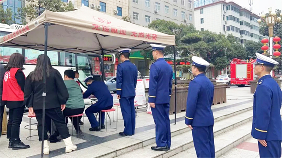 本次活動特別邀請了黨的二十大代表、石泉縣體育運動管理中心教練員、安康市中心血站無償獻血形象大使夏江波,向平利青年發(fā)出無償獻血倡議,并來到獻血活動現(xiàn)場,與獻血青年合影留念。?