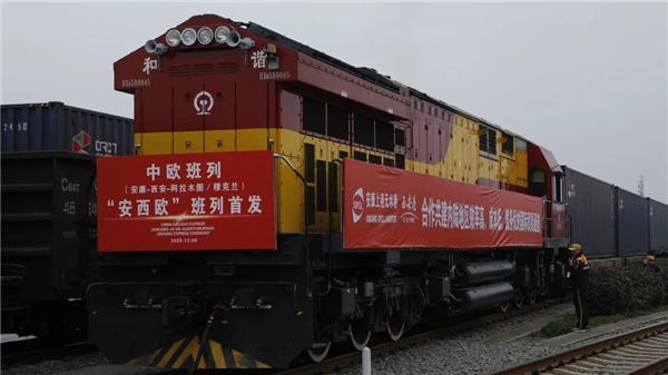 2020年12月8日下午,安康無水港“安西歐”中歐班列首發(fā)儀式在安康東站貨運廣場舉行,標志著我市向西全面貫通安康至歐洲物流大通道,為我市早日成為區(qū)域物流樞紐城市邁出了堅實的一步。