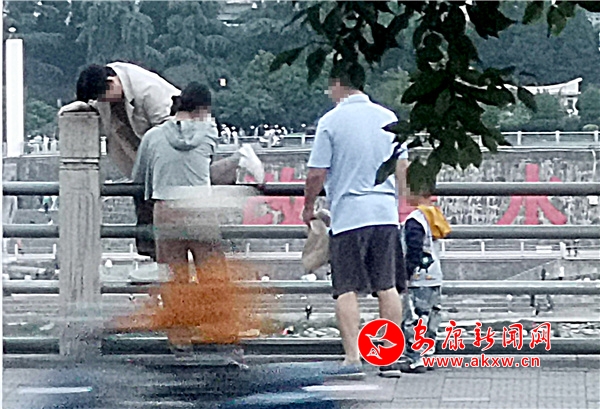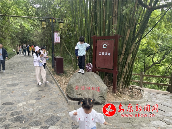“樓閣云中建,竹木藏山巔?!薄拔逡弧逼陂g,風景優(yōu)美、距離城區(qū)較近的香溪洞風景區(qū)也迎來了“游客潮”。在眾多自覺遵守文明出行規(guī)則的游客中,一孩童隨意踩踏在景觀石頭上,和溫馨提示牌上的“愛護環(huán)境,文明出行”形成鮮明對比。