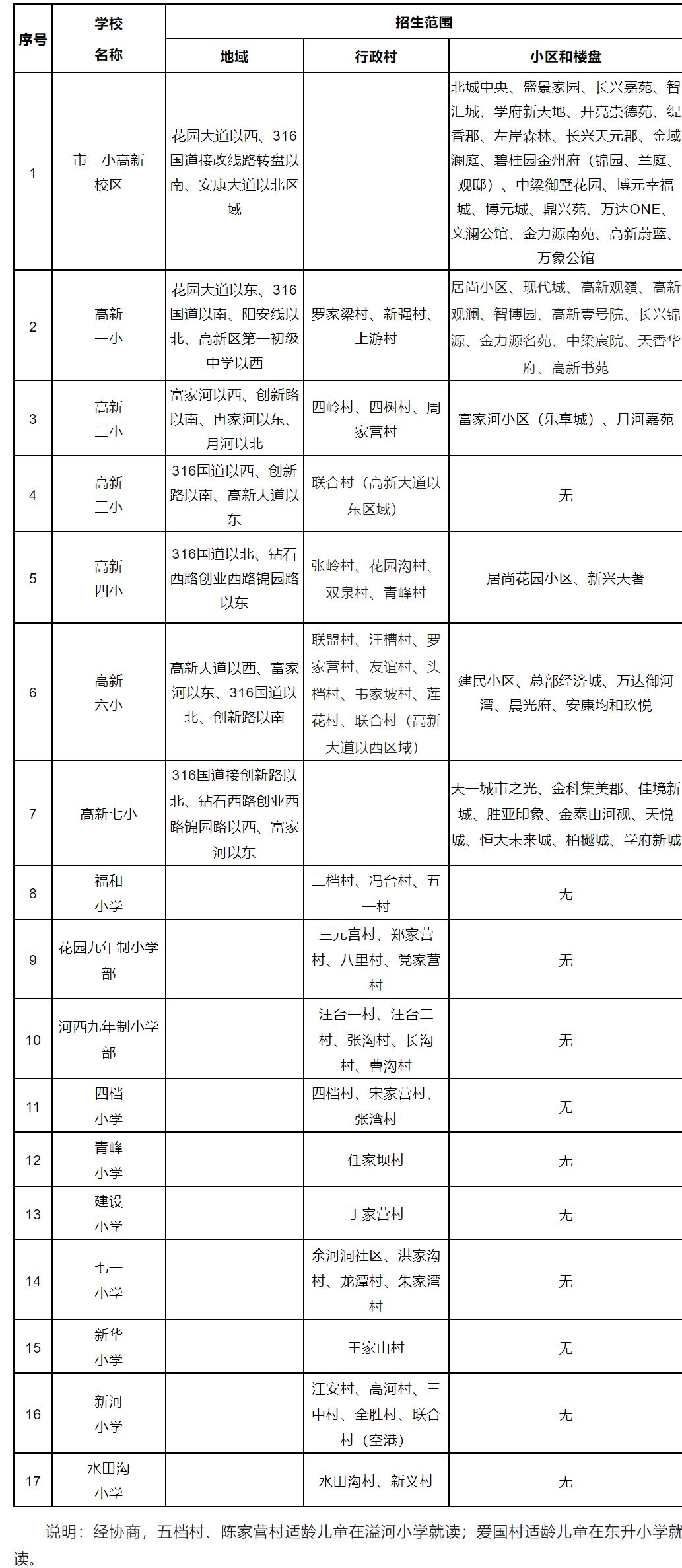 三、安康高新區(qū)2023年小學服務范圍一覽表