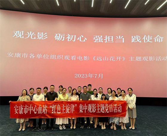7月21日,安康市中心血站組織開展“紅色主旋律”集中觀影主題黨日活動,組織20余名黨員干部、職工觀看了以蘇陜協(xié)作、教育扶貧為主題的電影《遠山花開》。