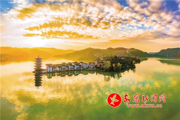 在瀛湖,冬日里的暖陽往往午后才露出羞澀的笑臉。聽說清泉老碼頭新打造了一座古香古色的小鎮(zhèn),與四周的群山和這里的大湖面渾然一體,美麗壯觀。11月下旬的一個下午,待云霧慢慢散開,我和紀(jì)平、世軍驅(qū)車來到清泉老碼頭。過去,這個碼頭是跨漢江通往玉嵐的必經(jīng)之地,也是嵐河與漢江的交匯處?;鹗瘞r電站大壩蓄水后,這里呈現(xiàn)出瀛湖最開闊的湖面,螺峰島、翠屏島、玉興島、五龍山等形成了四面環(huán)水的島嶼,清泉、玉嵐、橋興、關(guān)埡子、紅巖堡、南溪溝、任家灣等地縱橫交錯,形成了諸多形態(tài)各異的半島。水位升至最高時,“腰帶”消失,山與水渾然一體,與綿延的山勢溫柔相依。此時山頭已是草木蕭疏,只剩下光禿禿的樹枝了,而瀛湖兩岸卻秋意正濃,山坡上的紅黃綠像是被打碎了的調(diào)色盤,洋洋灑灑,帶著幾分溫潤嵌入山坡、映入湖中,在藍(lán)天白云的映襯下,宛如一個童話世界。忽然,一艘游船駛過,五彩斑斕的倒影頃刻被攪拌成彩色綢緞,任其在湖中翻滾飄蕩。夕陽劃過山頭的那一刻,紅霞漫天,湖面被染成橘色之后,一片寂靜。只有此時,山之沉穩(wěn)端莊和水之嫵媚溫柔交融一體,呈現(xiàn)出無與倫比的美。我想,這不正是我想要的那幅極具詩情畫意的場景嗎?有感: