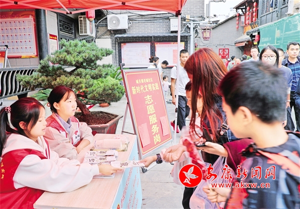 中秋國慶節(jié)假期,石泉縣在景區(qū)景點(diǎn)以及人流、車流集中地安排志愿服務(wù)點(diǎn),積極組織文明實(shí)踐志愿者,為游客提供旅游咨詢、文明引導(dǎo)等服務(wù)。董長松 攝