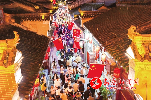 9月29日晚,漢陰縣雙河口鎮(zhèn)“古韻雙河口 文旅煥新生”文旅系列活動(dòng)正式啟動(dòng)。圍繞十一黃金周假期,雙河口古鎮(zhèn)景區(qū)陸續(xù)舉辦了“古風(fēng)游園”“宋韻美食節(jié)”“松風(fēng)雅韻”“古鎮(zhèn)音樂節(jié)”“非遺民俗展演”“篝火煙花秀”等系列活動(dòng)。王建霞 熊樂 攝