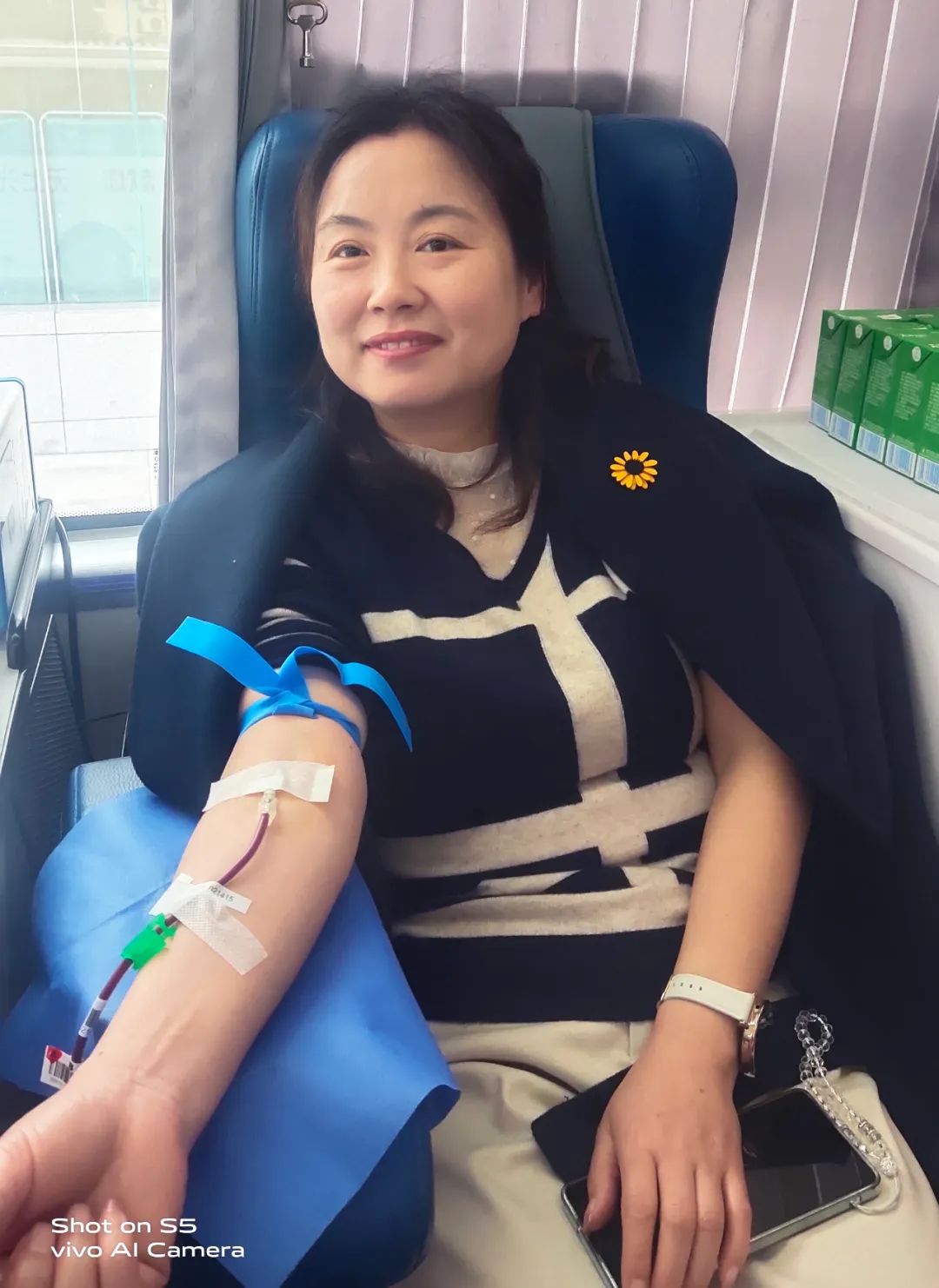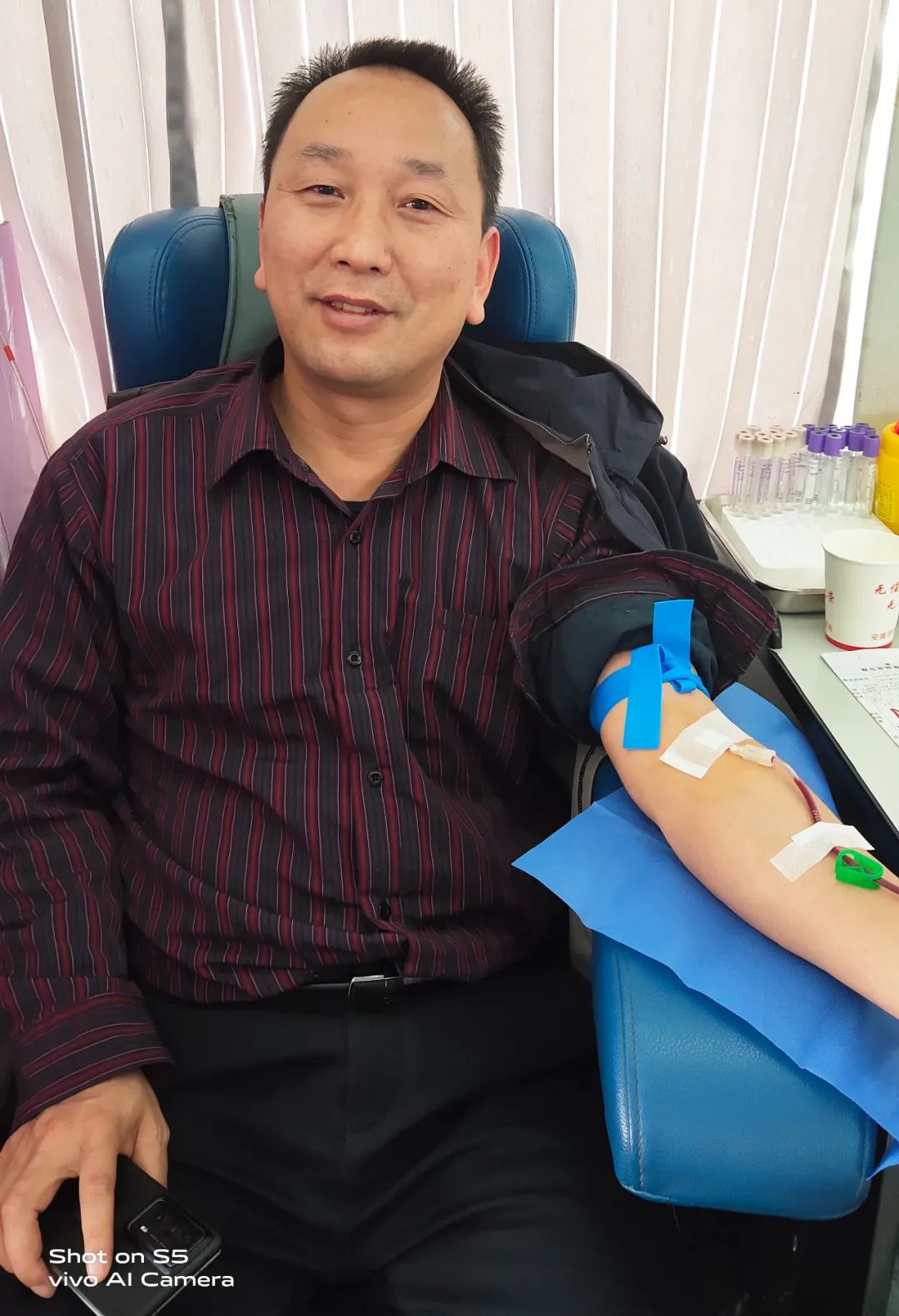 黨辦主任李子梅笑著說:“我一直想獻(xiàn)血,前幾次因?yàn)樯眢w原因沒有獻(xiàn)成,還特別遺憾,這次檢測(cè)符合獻(xiàn)血標(biāo)準(zhǔn)后我特別高興,作為醫(yī)務(wù)工作者,能夠?yàn)闊o償獻(xiàn)血事業(yè)貢獻(xiàn)自己一份微薄的力量,這很有意義。”