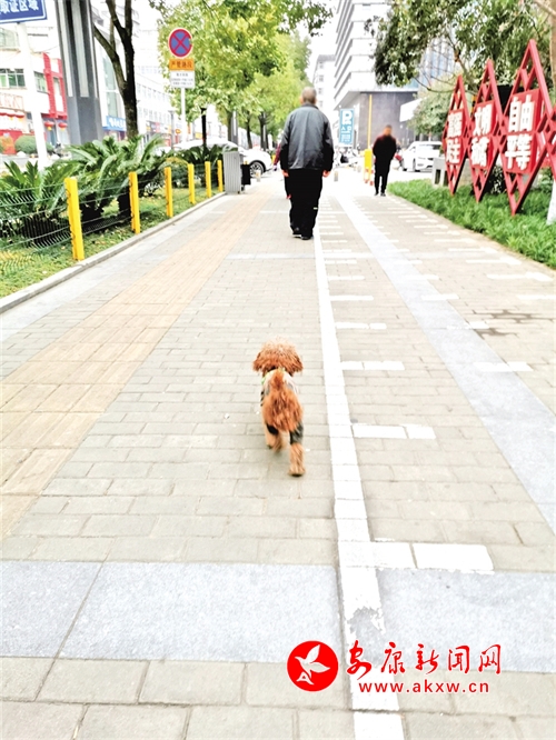 1月4日,在安康育才西路有市民遛狗不牽繩。記者 潘潤生 攝