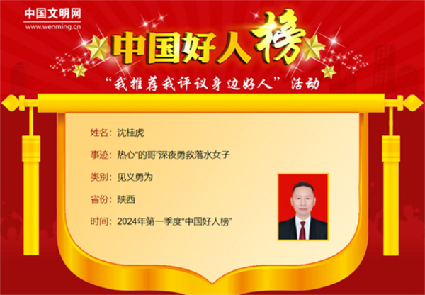 4月18日,2024年第一季度“中國好人榜”發(fā)布儀式暨全國道德模范與身邊好人現(xiàn)場交流活動(dòng),在江西省九江市舉辦。我市沈桂虎光榮上榜。
