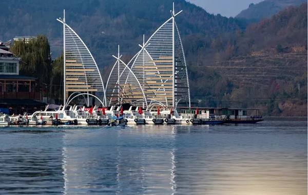 初到安康市漢濱區(qū)流水鎮(zhèn),放眼望去,青石鋪就的街道,頗具古風(fēng)的酒肆店面,令人耳目一新。緩步前行,步行百余步,及至碼頭,豁然開(kāi)朗,碧水蜿蜒于青山之間,輕舟搖曳,漸行漸遠(yuǎn),不禁想起唐代詩(shī)人李白的那句“孤帆遠(yuǎn)影碧空盡,唯見(jiàn)長(zhǎng)江天際流”,飽具詩(shī)情畫(huà)意。