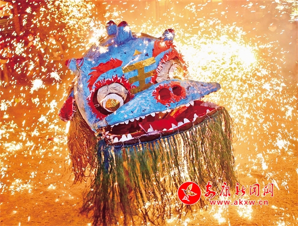 太平燈,又名“火獅子”,興起于明朝嘉靖年間,2015年12月被列入“陜西省第五批民俗類非物質(zhì)文化遺產(chǎn)名錄”。披紅掛彩舞翩躚,火樹銀花不夜天。這是一場“攻”與“守”的博弈,是一場屬于光與火的“盛宴”,也是視覺與心靈的雙重震撼。前期經(jīng)歷了“扎、糊、編、繪、合”五大工序制作而來的獅子活靈活現(xiàn),靜待佳時。正月十三到正月十六,當(dāng)天色漸晚,人群便如眾星捧月似的簇擁著一黑一青兩只獅子如約而至。在花燈引路,鑼鼓伴樂下,獅隊沿著固定的道路走街串巷。每到一戶人家,獅子以粗獷的步伐搖頭擺尾向主人“示威”或“挑釁”,主家和圍觀的群眾便拿出特制的“花子”對其噴射煙火。獅子在噴出的萬道金光中毫無懼色,反而在烈焰騰飛中雀躍歡舞,與火星融為一體,在古鎮(zhèn)街區(qū)的情境襯托下,塑造出崇尚和諧、敬畏自然的傳統(tǒng)底色和恣意縱橫、瀟灑自由的現(xiàn)代本色。花子燒得越猛烈,呼喊的聲浪越高,祈福的心愿也就越強烈,飽含著祈求生活安定、國泰民安的美好寓意,映照著涌動銳意創(chuàng)新、開拓進取的澎湃熱潮,而這些風(fēng)韻,也都如同藏在蜀河血脈中的基因密碼般,代代相傳,經(jīng)久不衰。