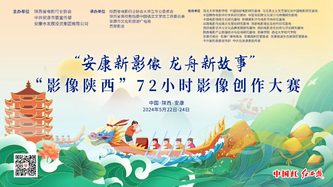 “安康新影像·龍舟新故事”“影像陜西”72小時(shí)影像創(chuàng)作大賽由陜西省電影行業(yè)協(xié)會(huì)、中共安康市委宣傳部、安康市發(fā)展投資集團(tuán)有限公司主辦,陜西省電影行業(yè)協(xié)會(huì)大學(xué)生專業(yè)委員會(huì)、陜西省高校教指委中國(guó)語(yǔ)言文學(xué)類工作委員會(huì)、安康市文化和旅游廣電局、西部影談承辦。通過主題限時(shí)拍攝、分享交流、展映評(píng)獎(jiǎng)等活動(dòng),匯集新興影視創(chuàng)作力量,以安康為創(chuàng)作空間,不限制創(chuàng)作題材風(fēng)格,鼓勵(lì)青年影人以年輕、多元的視角在72小時(shí)內(nèi)進(jìn)行短片創(chuàng)作,從節(jié)慶活動(dòng)、自然風(fēng)光、現(xiàn)代都市、人文生活、美食文化等角度,為安康文旅、龍舟文化提供影像表達(dá)的另一種可能。