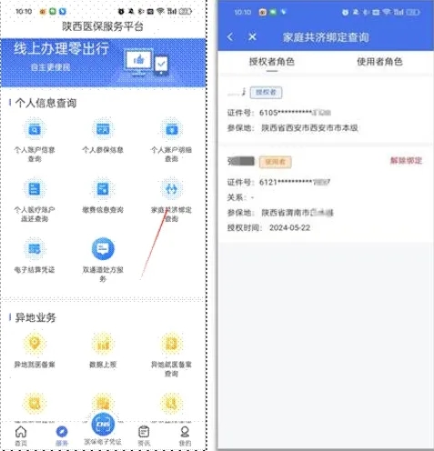 “陜西醫(yī)保APP/小程序”首頁選擇家庭共濟綁定功能辦理。也可以線下到醫(yī)保經(jīng)辦窗口由工作人員辦理。