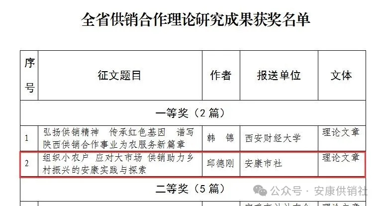 按:本文系安康市供銷合作社黨組書記、理事會主任邱德剛署名理論文章,立足供銷助力鄉(xiāng)村振興的安康實(shí)踐與探索,深入闡述了“組織小農(nóng)戶應(yīng)對大市場”的內(nèi)在邏輯,把群眾“組織起來”投身經(jīng)濟(jì)合作的實(shí)踐方法,在助力鄉(xiāng)村振興、推進(jìn)共同富裕實(shí)踐中探索出一條可復(fù)制可推廣的典型經(jīng)驗(yàn),其理論內(nèi)涵、實(shí)踐邏輯為在推進(jìn)鄉(xiāng)村振興中更好發(fā)揮供銷社的獨(dú)特優(yōu)勢和重要作用提供了有益參考,具有較強(qiáng)的指導(dǎo)意義。該文在中華全國供銷總社和陜西省供銷總社“薪火相傳七十載,砥礪奮進(jìn)新時(shí)代”主題征文中獲評“全省供銷合作理論研究成果一等獎”。