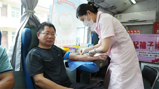 活動現(xiàn)場,無償獻血志愿者在醫(yī)務人員的引導下有序進行登記、體檢、測血壓。紅色的血液從血管中抽出,緩緩流進輸血袋,一袋袋鮮紅的血液和一張張光榮的獻血證,傳遞著愛心和希望。
