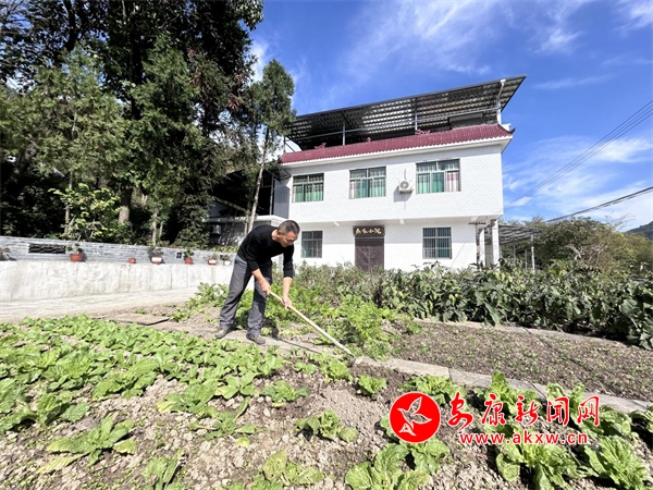 剛到門口,秦德盛一邊悠閑地給自家院子的小菜園澆水,一邊熱情地招待我們。