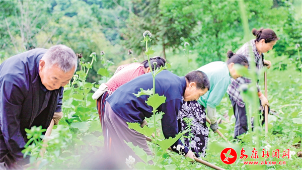 曾家鎮(zhèn)金坪村村民正在云木香種植基地里除草