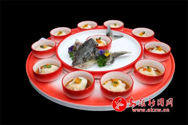 “陜南淡水魚餐飲暨‘贛義鑫杯’烹飪技能大賽”是張顯峰走出去學(xué)習(xí)交流檢驗(yàn)自己菜品研究成果的平臺。在準(zhǔn)備本次比賽菜品時(shí),他選用了紫陽縣最好的食材“富硒鱘魚”、花鰱魚,土黑豬五花肉及羊肚菌等蔬菜,精心制作了兩道菜品,第一道菜品是紫陽茶香宴中的主菜——茶香鱘龍。這道菜擺盤高雅,肉質(zhì)細(xì)膩,口味鮮美,茶香與淡水魚的完美結(jié)合,讓人仿佛置身于清新的茶山之間,品味著大自然的饋贈(zèng)。