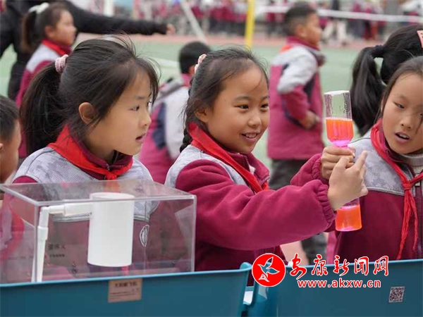 在各個科學實驗項目前,同學們駐足停留,認真觀察、反復(fù)操作,沉浸在知識的海洋與科技的奧秘中,操場上不時傳來陣陣驚嘆聲?!拔易罡信d趣的是機器人,通過手柄遙控能讓機器人模仿奔跑跳躍,跟我們打招呼,真是太神奇了,我以后要更加努力地學習科學知識,探索更多的未知領(lǐng)域。”五年級一學生激動地說。