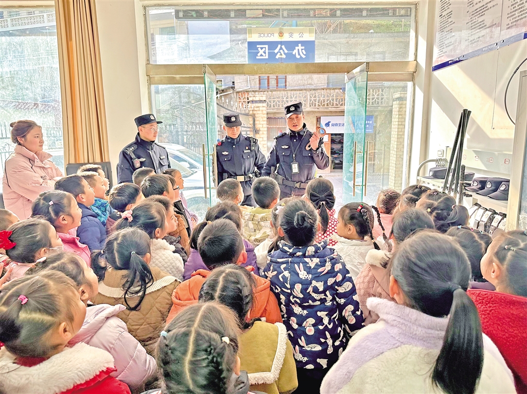 1月8日,紫陽縣公安局高橋派出所舉行“萌娃進警營 警心伴童心”主題110宣傳日警營開放活動,邀請轄區(qū)學(xué)校師生走進警營,感受警營文化。陳益謙 攝