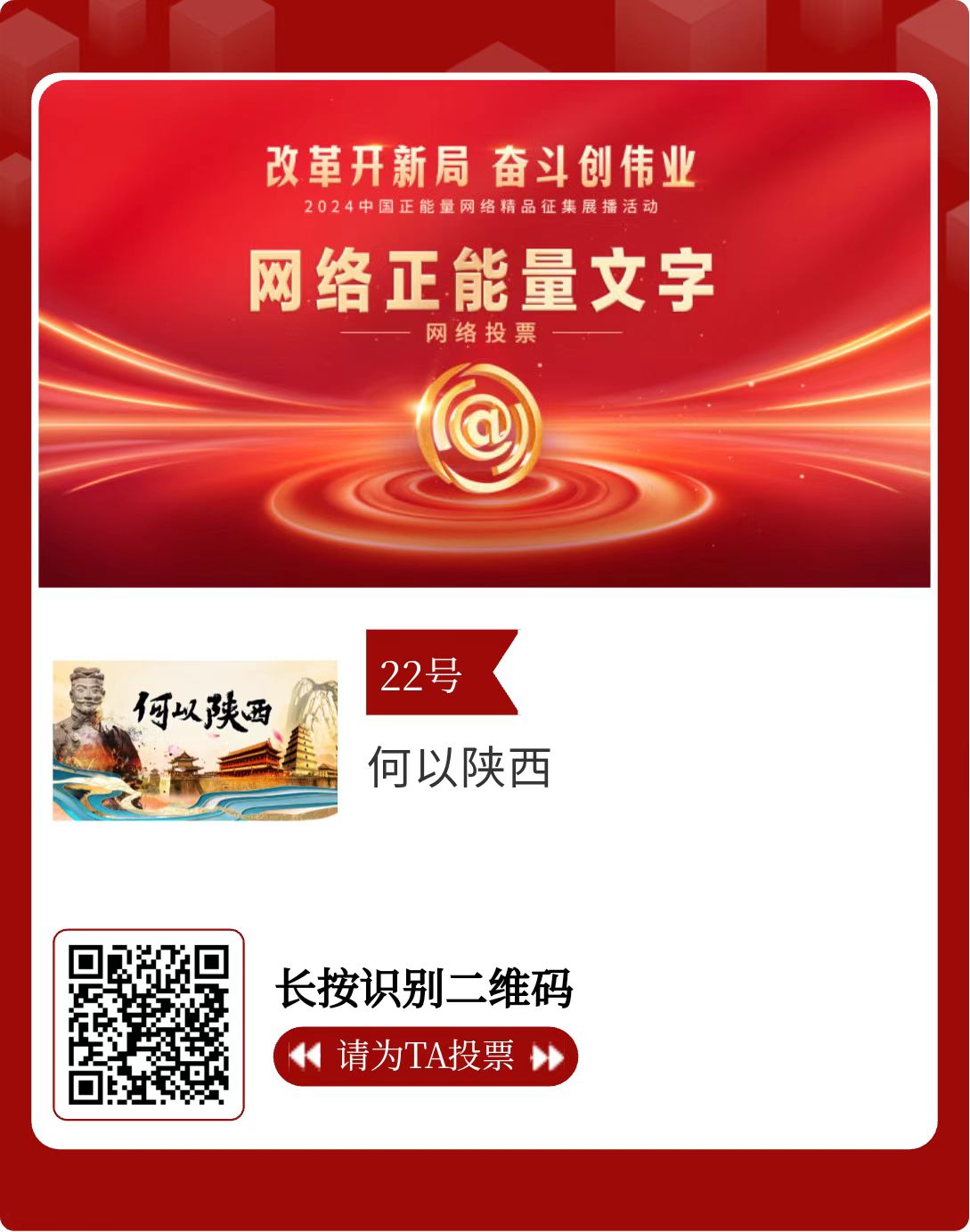 陜西省32件作品進(jìn)入投票環(huán)節(jié),投票時間為2月15日至2月21日,投票結(jié)果將作為中國正能量網(wǎng)絡(luò)精品遴選的重要參考。中國正能量網(wǎng)絡(luò)精品,期待每一個充滿正能量的你投出點(diǎn)贊一票。