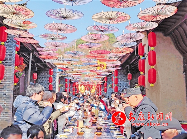 “觀眾朋友們大家好,這里是雙河口古鎮(zhèn),歡迎大家來到庖湯桌宴的活動現(xiàn)場!”冬季庖湯長桌宴的舉辦地,是修葺一新的驛道文化廣場,游客在這里觀看精彩的文藝節(jié)目,品嘗本土特色美食,欣賞茶馬古道歷史浮雕,品味雙河口魅力故事。該項目是2024年7月19日洪災(zāi)后,為修復(fù)損壞的護坡,依托現(xiàn)有地形條件,盤活原有閑置資源重新改造的文化廣場項目,于當(dāng)年10月1日建成投用。項目建成后,古鎮(zhèn)的景區(qū)框架拉得更寬,文化活動載體變得更大,文化內(nèi)容展示更加生動,配合12月31日建成投用的省級鄉(xiāng)村振興示范鎮(zhèn)展陳室項目,雙河口的歷史文化和人文故事變得可感可知,成為古鎮(zhèn)一處新的地標(biāo)性“打卡地”。