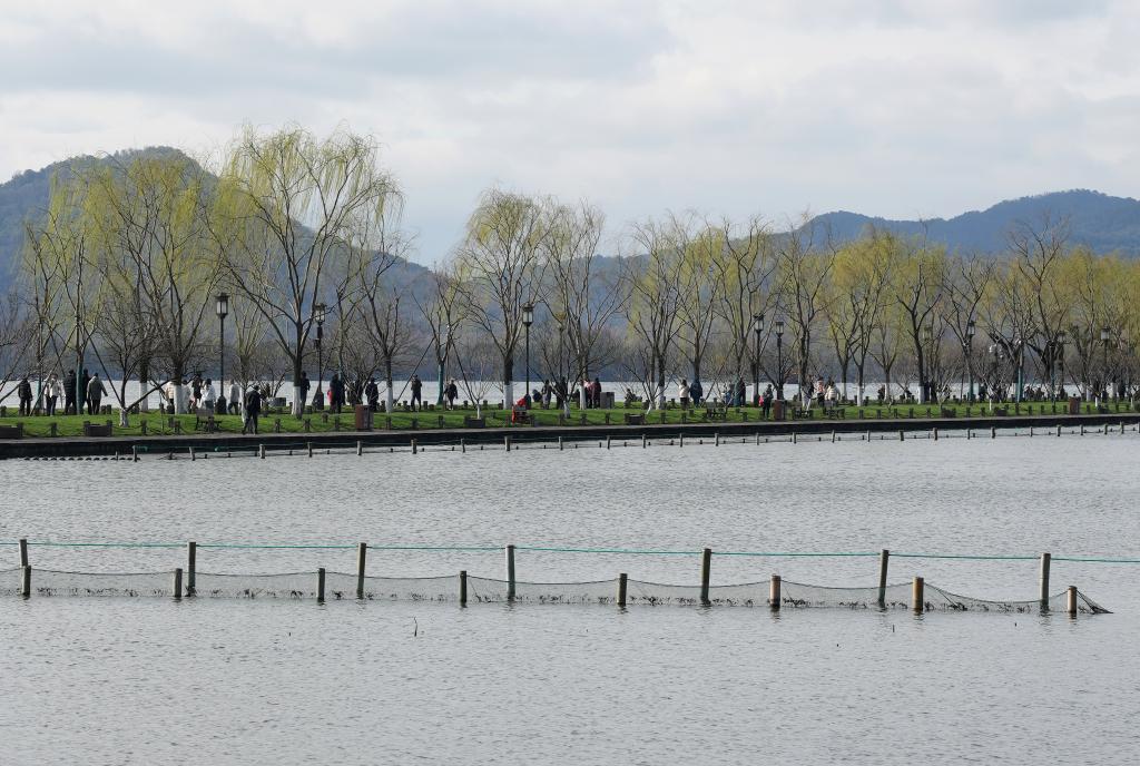 3月4日,游客行走在杭州西湖白堤上。春日,杭州西湖景區(qū)花紅柳綠,一派春光。新華社記者 韓傳號(hào) 攝