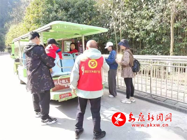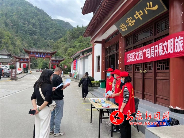 為增強(qiáng)游客的文明旅游意識,近日,漢濱區(qū)文旅廣電局組織志愿者們在雙龍景區(qū)現(xiàn)場向市民游客發(fā)放文明旅游宣傳折頁,宣傳講解文明旅游相關(guān)知識以及應(yīng)當(dāng)遵循的行為規(guī)范,引導(dǎo)游客有序排隊游玩。宣傳彩頁內(nèi)容既包含了安康的歷史文化、自然風(fēng)光介紹,也強(qiáng)調(diào)了保護(hù)環(huán)境等文明旅游具體要求,旨在引導(dǎo)每一位游客成為文明旅游的踐行者和傳播者,從自身做起、從小事做起,共展文明風(fēng)采,共樹文明形象,共享文明旅游好風(fēng)景。(漢濱區(qū)委宣傳部供圖)?