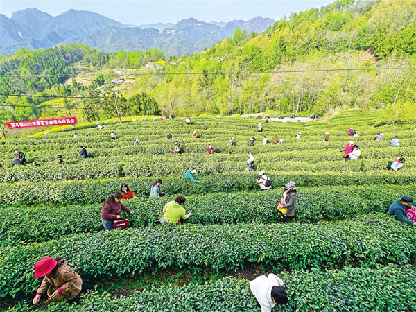 “開園嘍!”春茶采摘在嘹亮的號(hào)子聲中拉開帷幕,茶農(nóng)們頭戴遮陽帽、身挎竹簍,穿梭于青翠茶壟間,指尖在嫩芽間游走,陣陣茶葉清香伴隨著歡聲笑語回蕩山間。