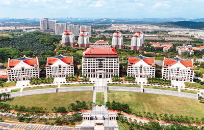 馬來(lái)西亞雪蘭莪州的廈門大學(xué)馬來(lái)西亞分校教學(xué)樓全貌。廈門大學(xué)馬來(lái)西亞分校供圖(新華社發(fā))