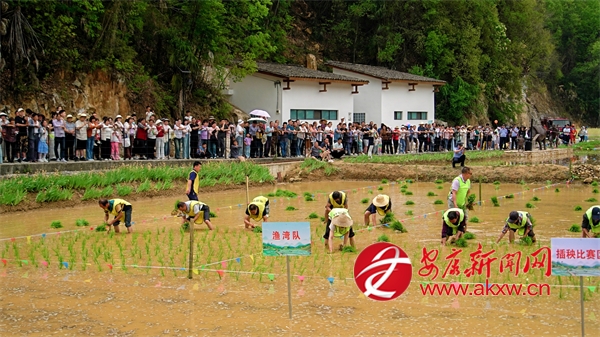 10點50分,插秧比賽正式開始,只見寨溝村、龍泉村、漁灣村、湯坪村四支隊伍在水田中依次排開。 隨著清脆的哨響,四支插秧隊伍迅速進(jìn)入狀態(tài),水田瞬間化作激烈的賽場。彎腰俯身,左手攥緊秧苗,右手分秧、插秧,一株株嫩綠的秧苗被精準(zhǔn)插入田中,泥水飛濺間,選手們你追我趕,汗水與歡笑交織,將傳統(tǒng)農(nóng)事活動演繹成了一場精彩絕倫的視覺盛宴。