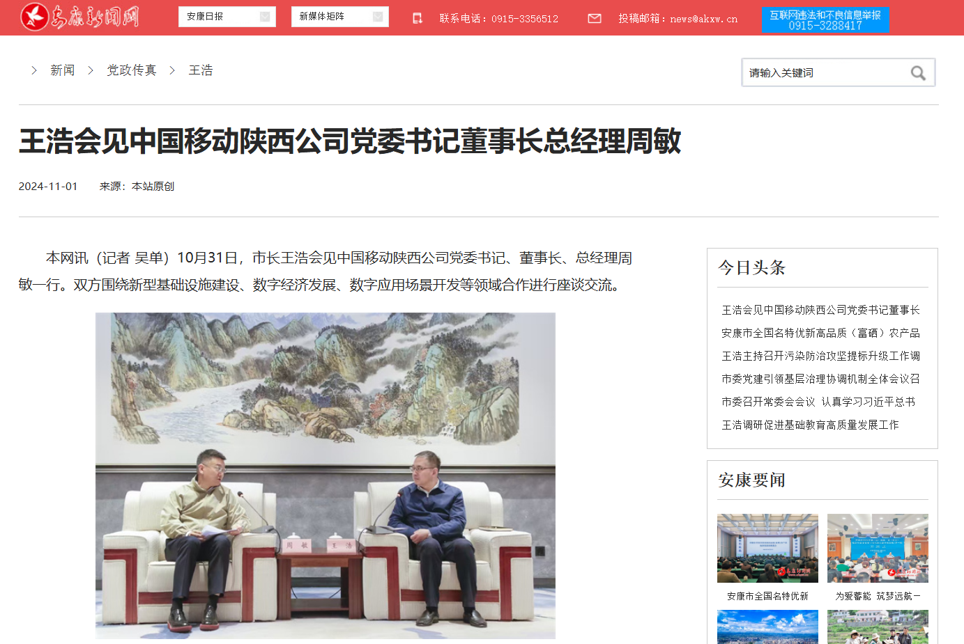《王浩會(huì)見中國移動(dòng)陜西公司黨委書記董事長總經(jīng)理周敏》(2024-11-01發(fā)布)