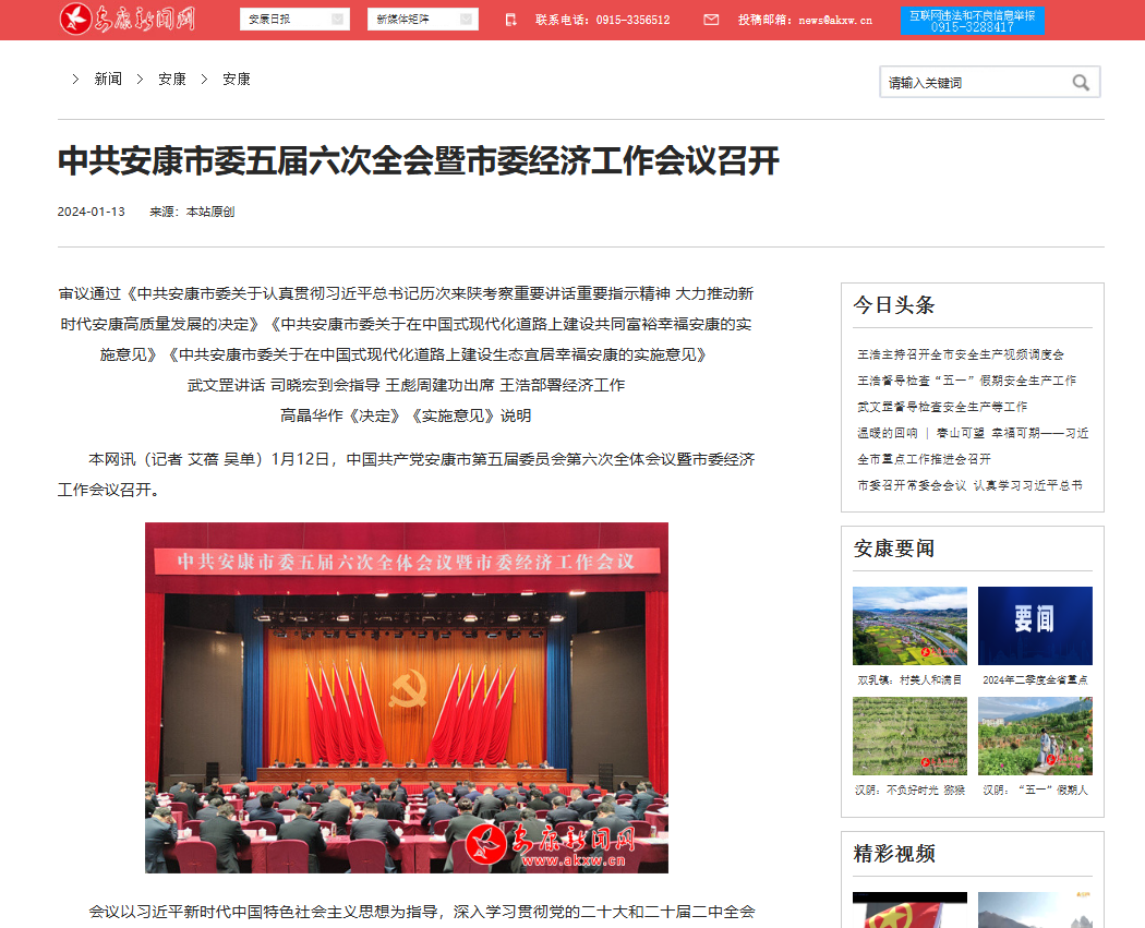 《中共安康市委五屆六次全會(huì)暨市委經(jīng)濟(jì)工作會(huì)議召開》(2024-01-13發(fā)布)