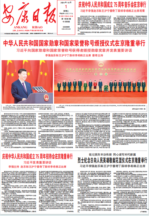 (2024年10月1日安康日報(bào)01版“中華人民共和國國家勛章和國家榮譽(yù)稱號頒授儀式在京隆重舉行”)