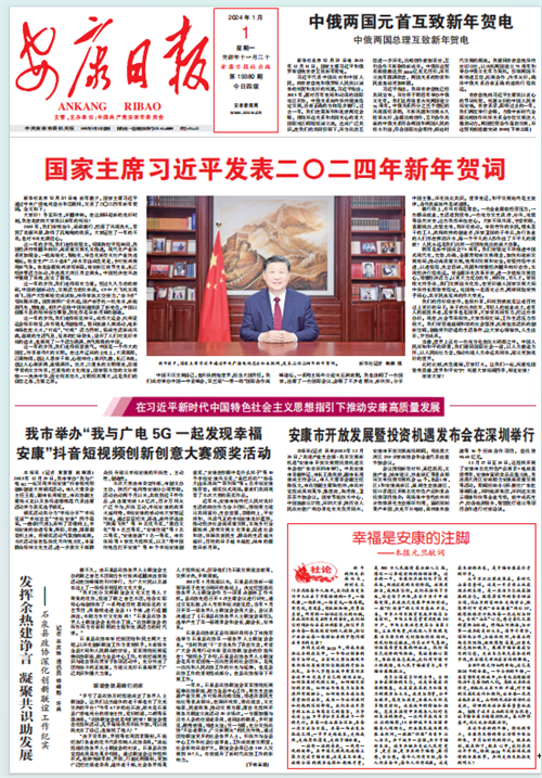 (2024年1月1日安康日報(bào)01版“幸福是安康的注腳——本報(bào)元旦獻(xiàn)詞”)