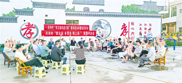 道德評(píng)議會(huì)上村民們講述孝義故事,感受榜樣力量。