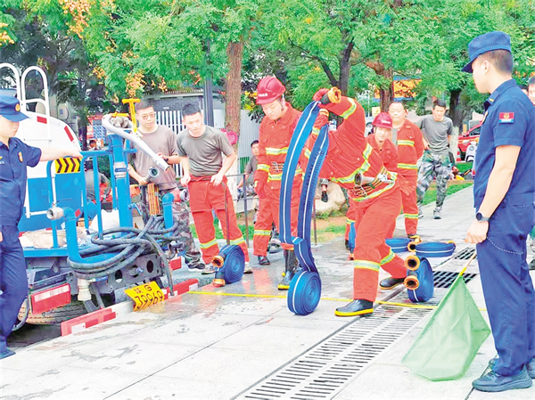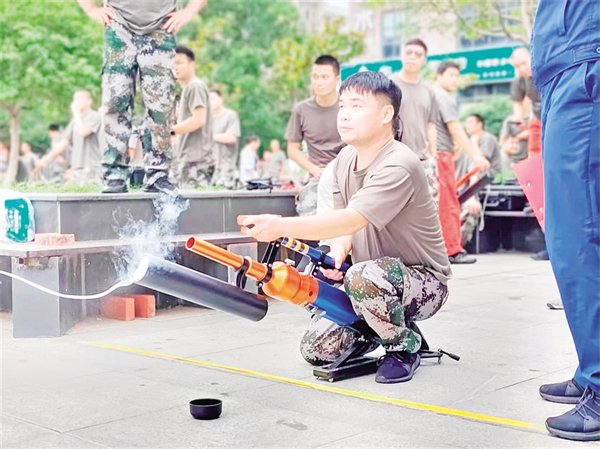 邱凱介紹,該鎮(zhèn)應(yīng)急救援隊(duì)由鎮(zhèn)級(jí)救援隊(duì)、15個(gè)村級(jí)救援分隊(duì)和水上應(yīng)急救援隊(duì)組成,共17支隊(duì)伍278人?!盀榱诉@次比武,后柳鎮(zhèn)收到通知后就積極籌備。兩個(gè)月里,參賽隊(duì)員除了到縣消防救援大隊(duì)接受專(zhuān)業(yè)培訓(xùn)外,平時(shí)也堅(jiān)持每周訓(xùn)練。”邱凱指著場(chǎng)邊的灑水車(chē)說(shuō),“這輛灑水車(chē)是鎮(zhèn)上自己改造的,不僅成本低,也更適合鎮(zhèn)情實(shí)際,五層樓以上的救援也能覆蓋。?