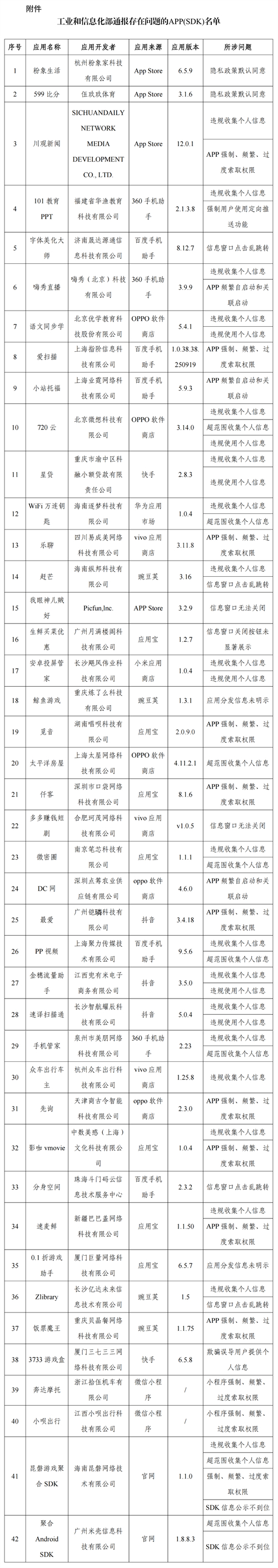 通報(bào):工信部通報(bào)!這42款A(yù)PP及SDK存在侵害用戶權(quán)益行為