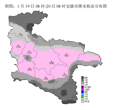 根據(jù)最新氣象觀測(cè)資料和數(shù)值模式分析,經(jīng)省市會(huì)商研判,預(yù)計(jì)今天夜間至21日我市有雨雪寒潮天氣,強(qiáng)雨雪時(shí)段為19日白天,巴山沿線部分地方有凍雨,川道河谷地區(qū)以小雨或雨夾雪為主,中高山地區(qū)雨夾雪轉(zhuǎn)小到中雪,秦巴山區(qū)及東部高山局地大到暴雪,20及21日白天全市大部仍有間歇性弱雨雪天氣。過(guò)程累計(jì)降水量:全市大部5~8毫米,東部局地超過(guò)12毫米,高山地區(qū)新增積雪深度可達(dá)3~12厘米。今天夜間至22日氣溫持續(xù)走低,過(guò)程全市大部平均氣溫下降8~10℃。22日雨雪天氣結(jié)束,受前期雨雪天氣和冷空氣持續(xù)影響,氣溫仍較低,預(yù)計(jì)最低氣溫將出現(xiàn)在22日或23日清晨,川道地區(qū)-5~-2℃,中高山地區(qū)-10~-6℃,局地低于-12℃。過(guò)程期間全市大部平均風(fēng)力3~4級(jí),山區(qū)局地有6級(jí)或以上陣風(fēng)。