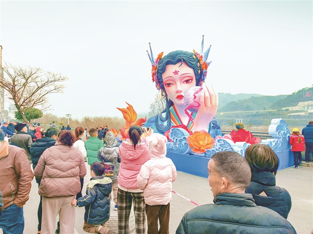 春節(jié)臨近,石泉縣依托獨特漢水文化、蠶桑文化、移民文化資源稟賦,通過設(shè)置漢江神女、蠶桑娘娘、嫦娥奔月、漢調(diào)二黃等造型獨特的燈飾,營造濃濃的新年氛圍。圖為1月17日下午,工人正在安裝燈飾。(譚文昌 攝