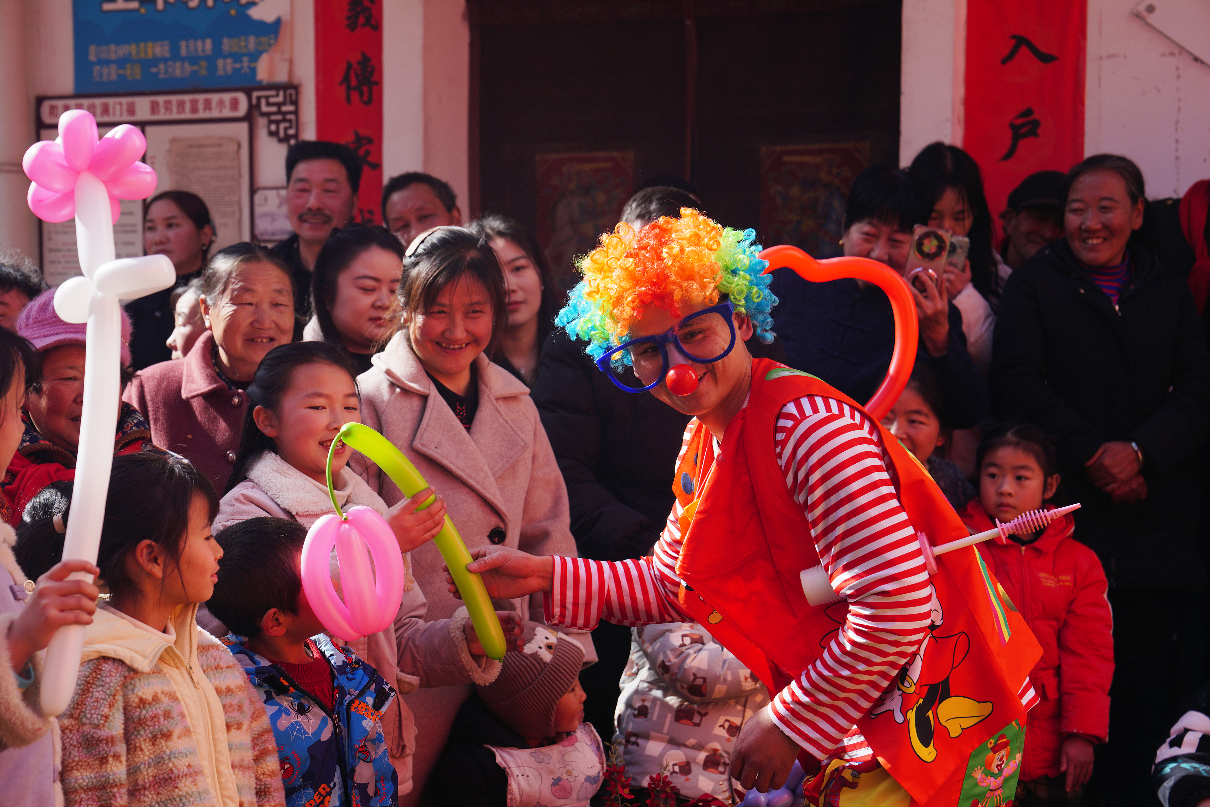 △ 2月2日,村民和游客觀看新場(chǎng)鎮(zhèn)“村晚”節(jié)目表演。