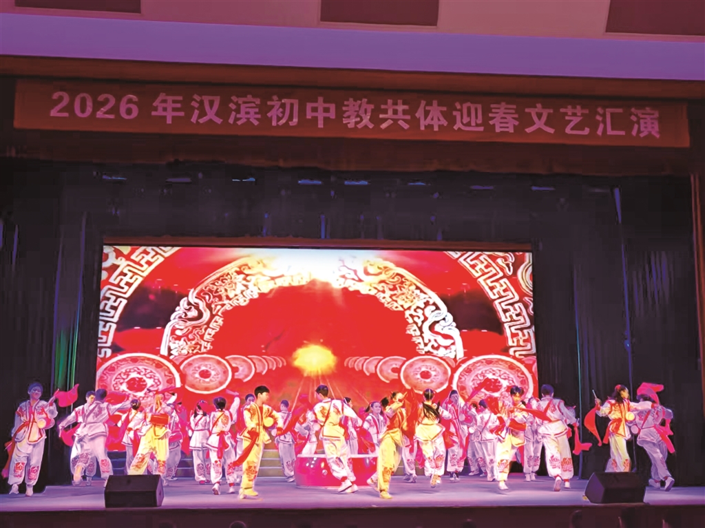 2月4日,漢濱初中教育共同體舉辦“同心筑夢傳薪火·和美共生向未來”迎春文藝匯演。演出分為“薪火相傳”“融合共進(jìn)”“夢想綻放”三大篇章,通過舞蹈、朗誦、非遺展示、音樂快板等豐富形式,生動展現(xiàn)了教育的初心使命與育人成果。 朱合玲 攝