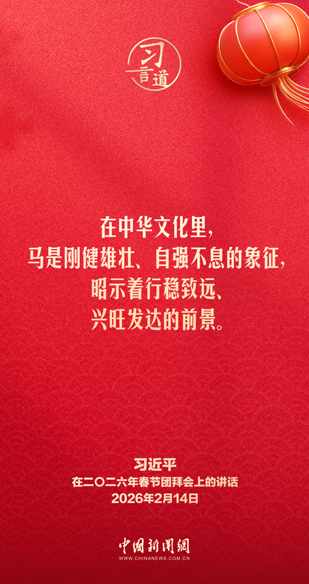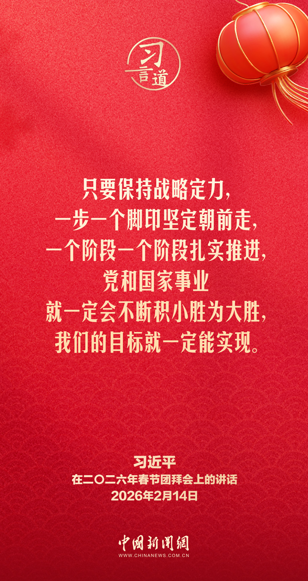 2月14日,中共中央、國務(wù)院在人民大會堂舉行2026年春節(jié)團(tuán)拜會。中共中央總書記、國家主席、中央軍委主席習(xí)近平發(fā)表講話,代表黨中央和國務(wù)院,向全國各族人民,向香港特別行政區(qū)同胞、澳門特別行政區(qū)同胞、臺灣同胞和海外僑胞拜年。他指出——
