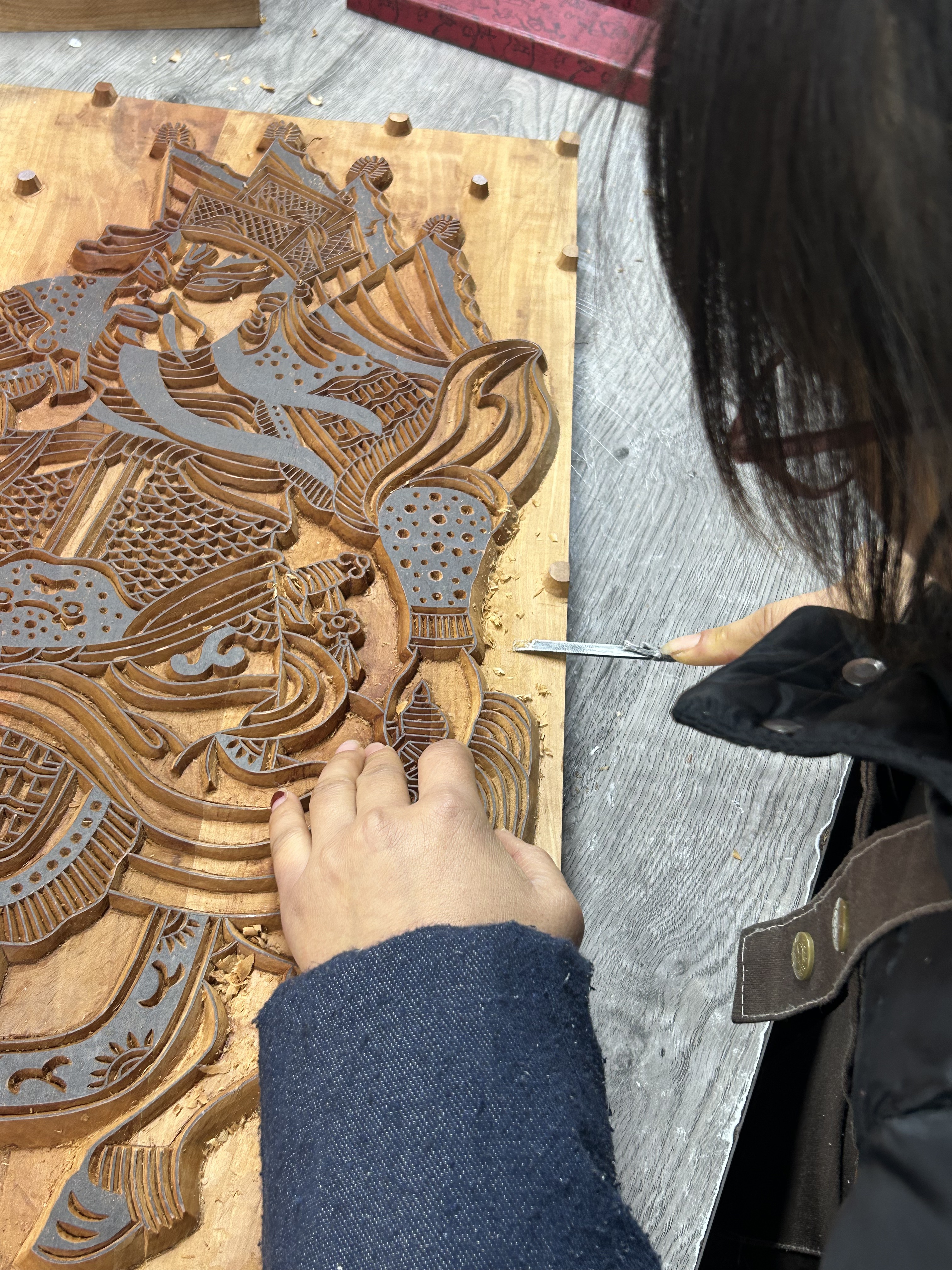 紙殼硬度低,拓印效果差強(qiáng)人意,他便自掏腰包購置了專業(yè)木刻板。